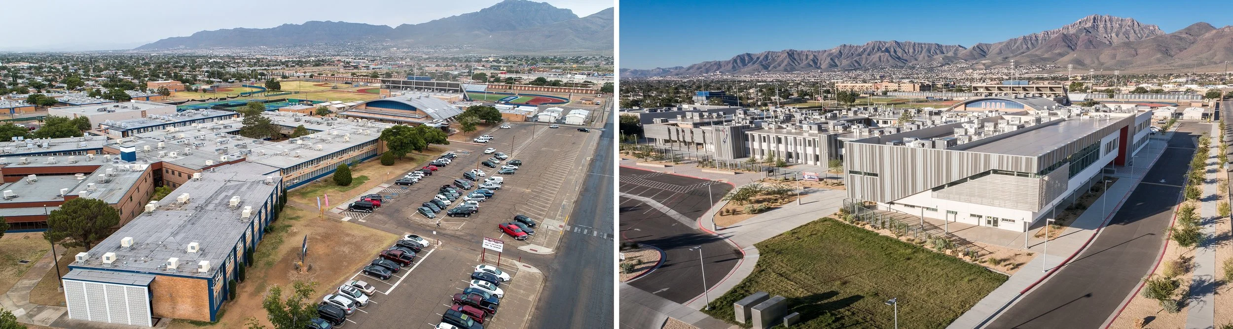 Role: Lead architectural designer for the transformation of Irvin High School—a sprawling, outdated campus reimagined into a unified, academy-based learning environment. Worked closely with EPISD to design a cohesive campus plan that replaced 10 disconnected buildings with modern, safe, and accessible facilities. The new layout emphasizes outdoor learning, seamless indoor-outdoor connections, and 21st-century educational spaces that support project-based learning and student success.